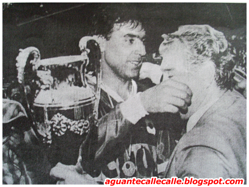 Laurence Tapia capitán albirrojo recibiendo la copa del ascenso zona sur 1988