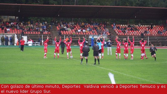 DEPORTES VALDIVIA (1): Andrés Ferragut, Juan Pablo Herrera (Adrian Melo), Pablo Acum (Julio Cabrera), Jose Aguilar, Claudio Díaz, Daniel Lovera, Franco Gómez, Robinson Villagrán, Eduardo Monroy, Claudio Saavedra y Alexis Rojas (Abel Cancino) D.T: Eduardo Soto