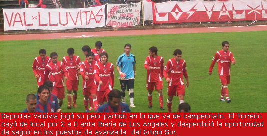 Con un inicio auspicioso para los nuestros, donde por unos 15 a 20 minutos dominábamos el partido, con muchas combinaciones y pases destacándose nuevamente el sentido futbolístico constante de Daniel Lovera, Kilian Delgado perdiéndose en posiciones de marca y el Pancho Muñoz, lográbamos inquietar la portería de los angelinos con varias llegadas claras, que nuestro enganche improvisado Rojas, se encargaba de perder a destajo. Esa fue la apuesta que nos mostraron los muchachos, hasta que en un ataque de apariencia inocente, en una pelota perdida por la izquierda, el 11 iberiano, quizás el jugador mas incisivo y talentoso de ese equipo, logra sacar el centro, ante una saga valdiviana confiada en que la bola saldría del campo, que encuentra al centro delantero absolutamente solo, sin ninguna marca a 150 kilómetros a la redonda, quien la empuja de cabeza, ante la mirada de impotencia del portero Ferragut, quien hoy tuvo una de sus tardes mas amargas bajo los tres palos.